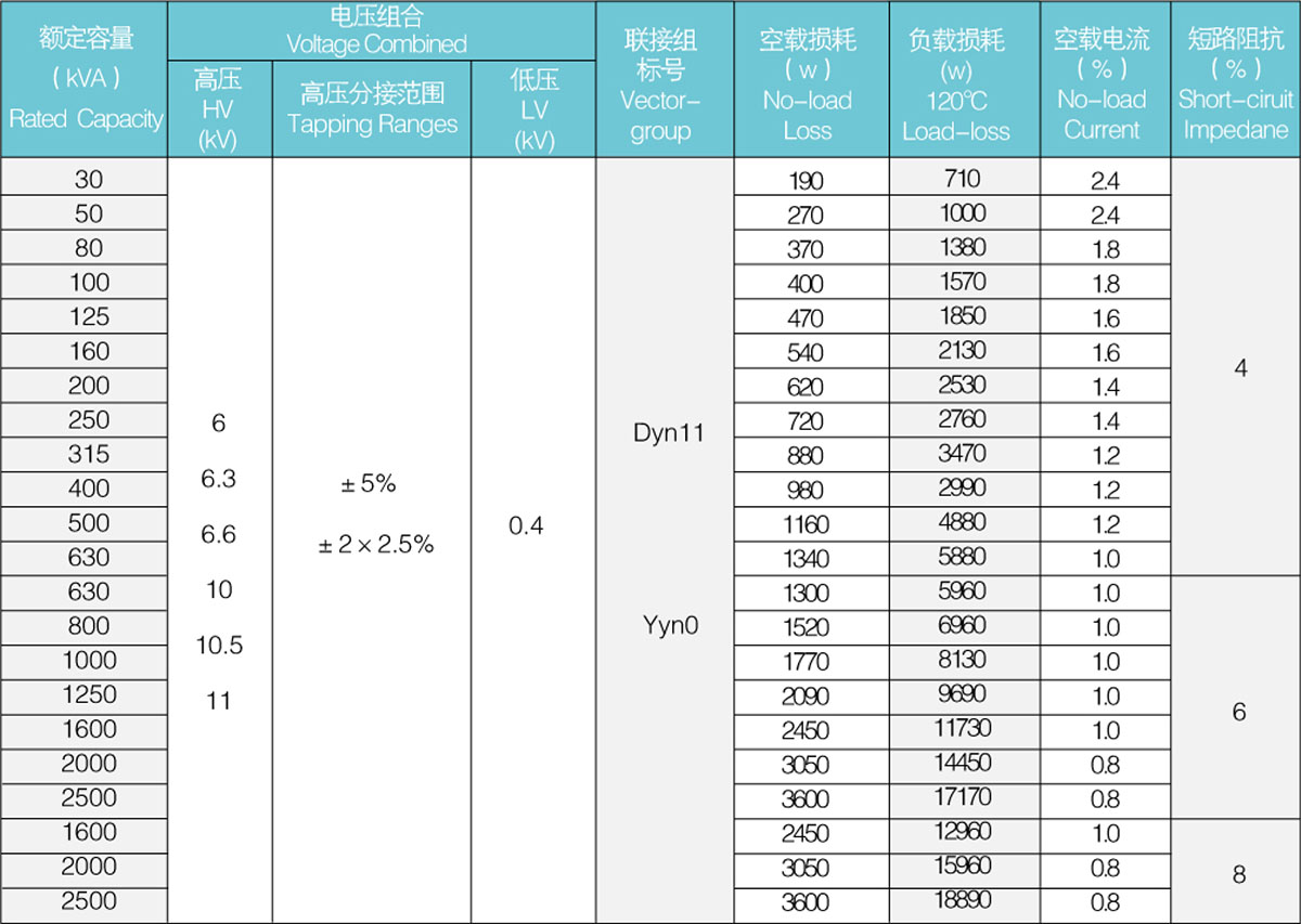 損耗低,局部放電量低、噪音小、散熱能力強,強迫風冷條件下可以150%額定負載運行。配備有完善的溫度保護控制系統,為變壓器安全運行提供可靠保障。